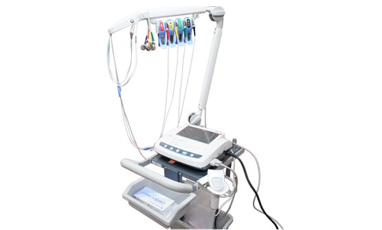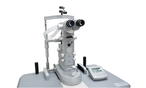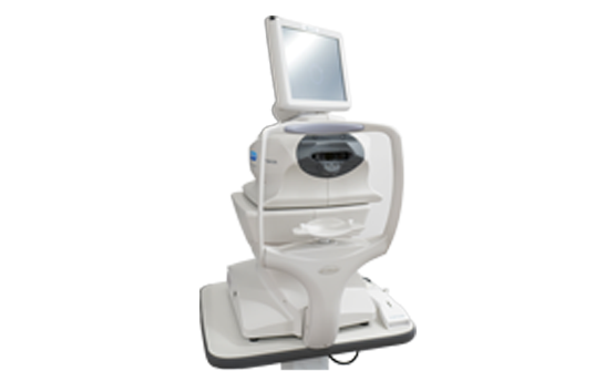 赤外線を使用して、眼の屈折度数(近視、遠視、乱視など)と角膜の曲率半径(丸みの程度)を測定します。また、角膜の詳細な形状や空気を使用した眼圧の測定も可能です。1台で多くの測定が行える最新の複合器です。